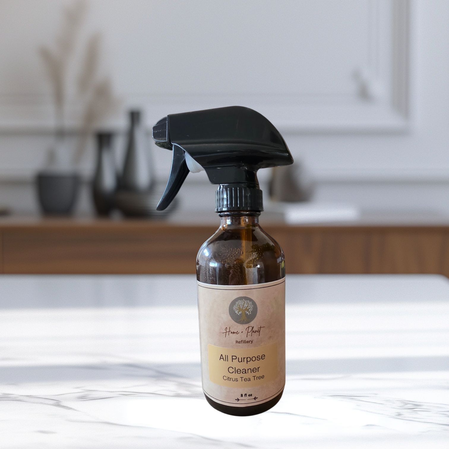 Eco-Friendly Design: Packaged in a signature Amber Glass bottle with a spray top, aligning with your mission for a zero-waste and sustainable home.