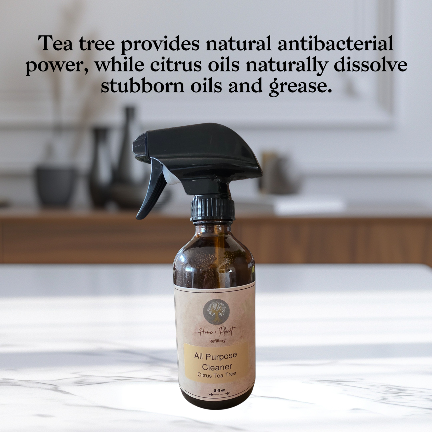 A powerful, multi-surface cleaning essential for every home. Crafted with a plant-powered formula, this Citrus Tea Tree spray cuts through grease and grime on most hard surfaces, leaving them sparkling clean and naturally fresh.