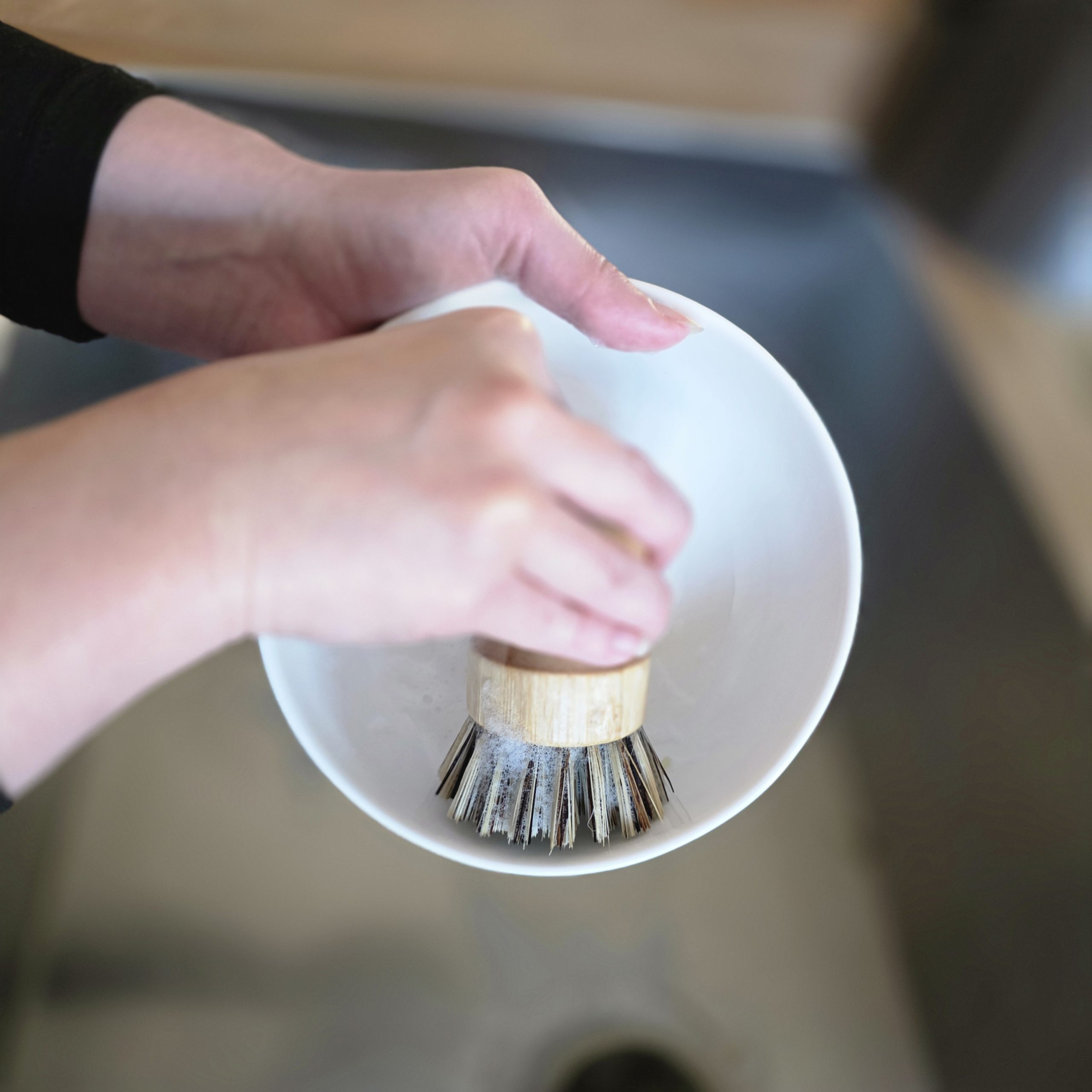 • To Use: Dampen the bristles, apply your favorite non-toxic dish soap—like our liquid refills—and scrub away.