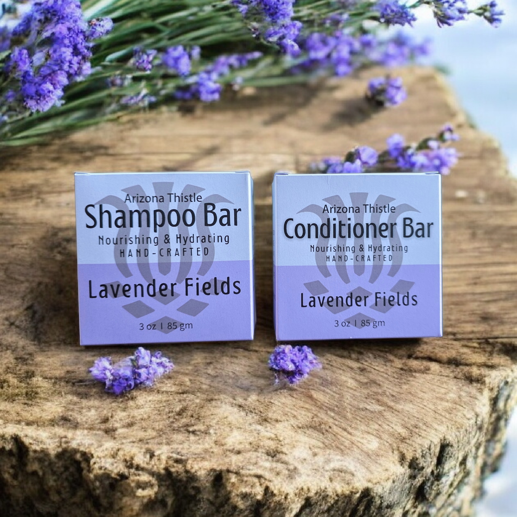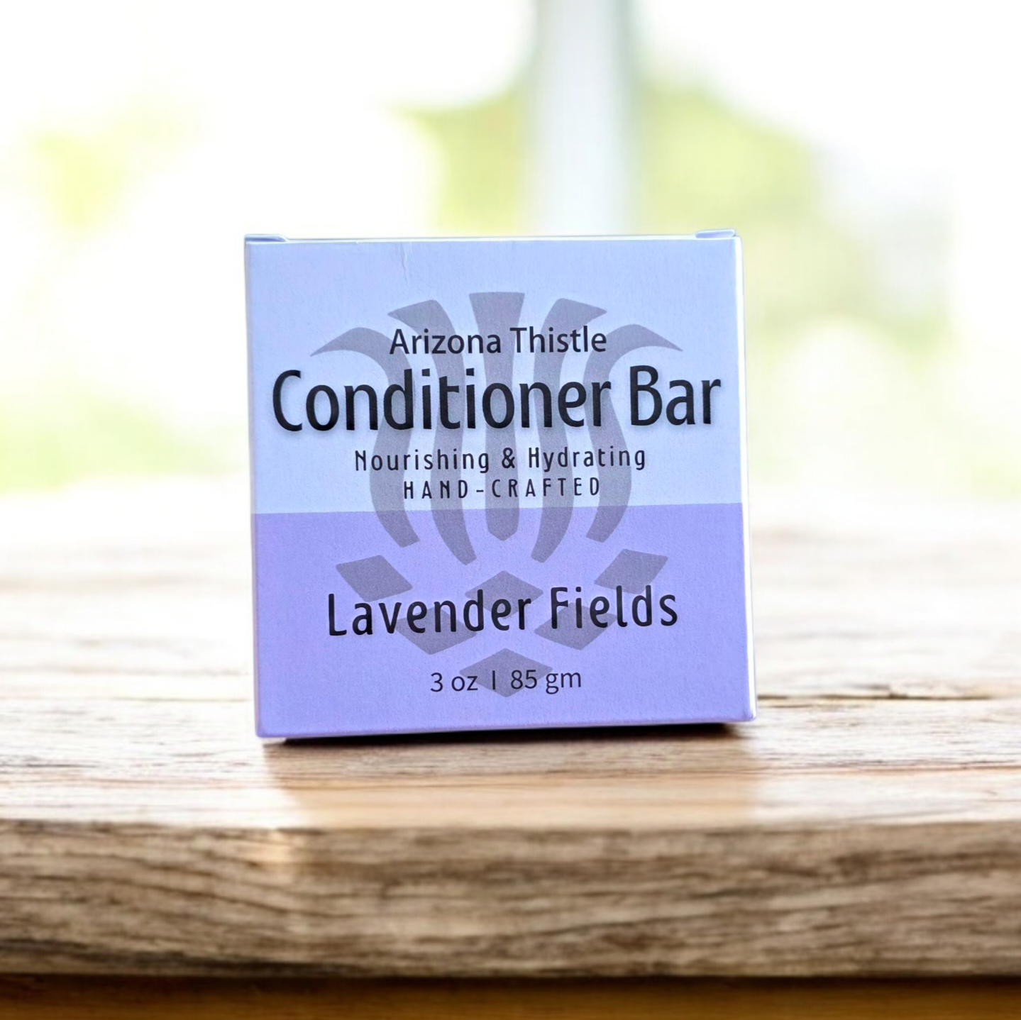 1x Arizona Thistle Conditioner Bar (Lavender Fields): A 3 oz (85 gm) nourishing and hydrating bar to soften and protect your hair.