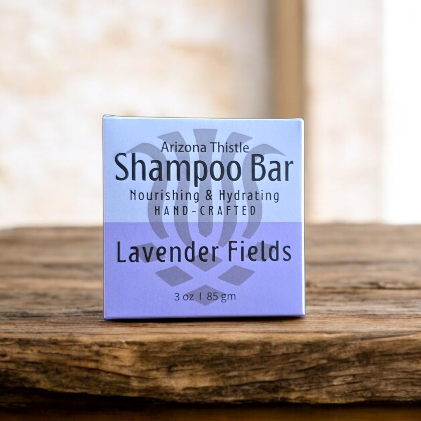 1x Arizona Thistle Shampoo Bar (Lavender Fields): A 3 oz (85 gm) hand-crafted bar for a deep, non-toxic clean.